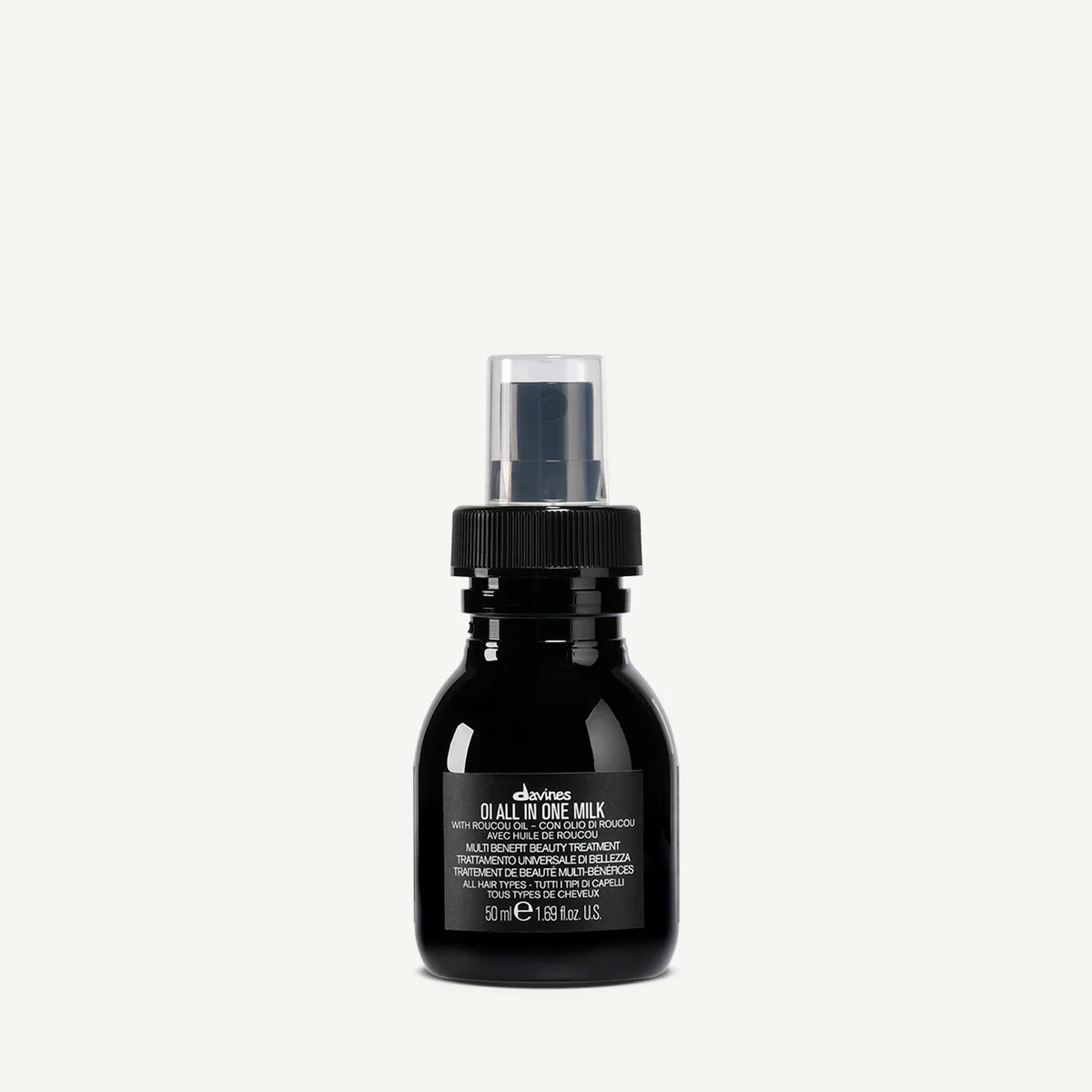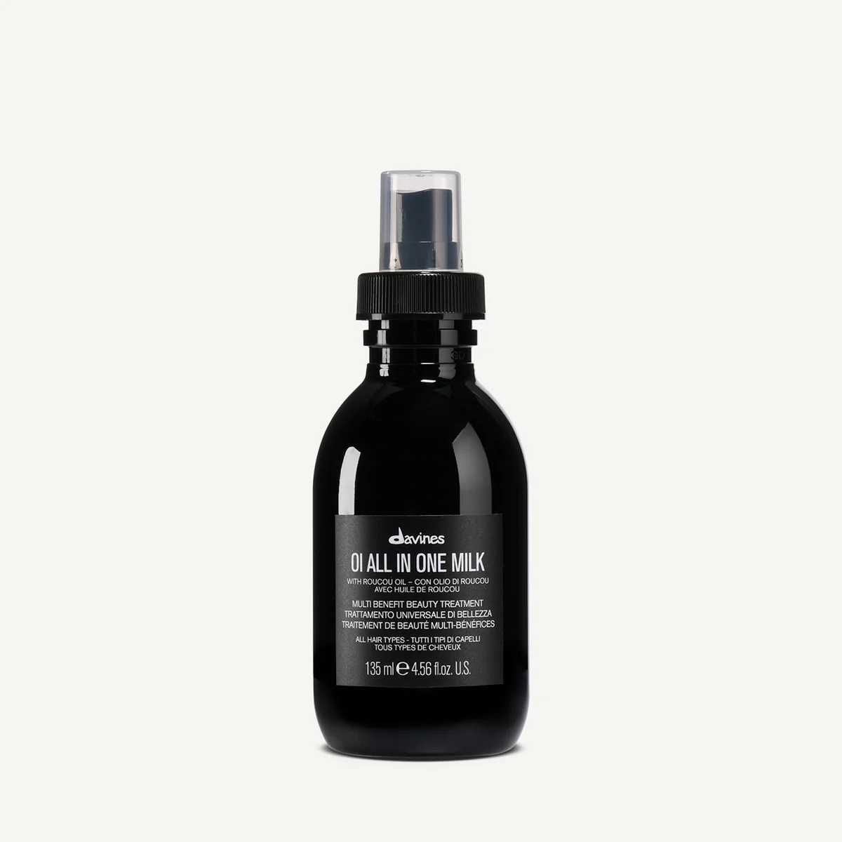 Davines OI All In One Milk — лёгкое питательное молочко с маслом аннато, провитамином B5 и аминокомплексом, которое увлажняет, защищает и упрощает уход за волосами. Подходит для всех типов волос, не утяжеляя их.