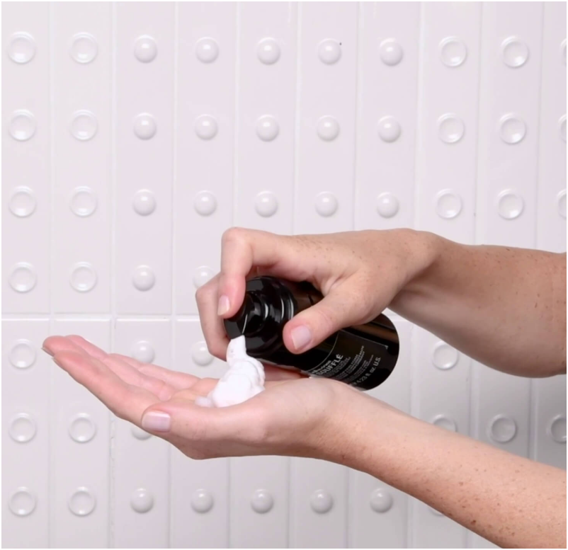 2. Нанесите 2 нажатия на ладонь для тонких волос или 3–4 нажатия для волос средней толщины и пористых волос.